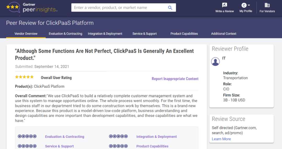 Tips::::【Peer Insights】——用户对企业IT产品和服务发布真实评价的平台。。。。目前已有355个市场,,,,255,000条经过验证的评价。。。。每一条评价Gartner会针对参评企业营收规模及参评人员信息做验证、、、评价内容做多维核实。。